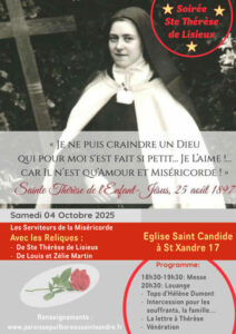 Soirée Sainte Thérèse de Lisieux, samedi 04 octobre à partir de 18h30 à l’église de Saint Xandre